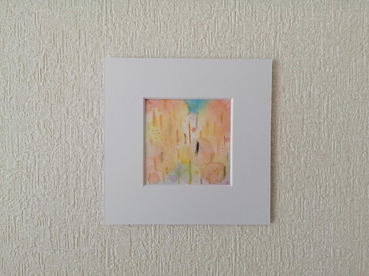 作品は額装マットに貼り付けてあります。