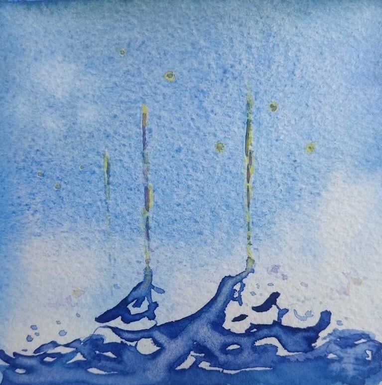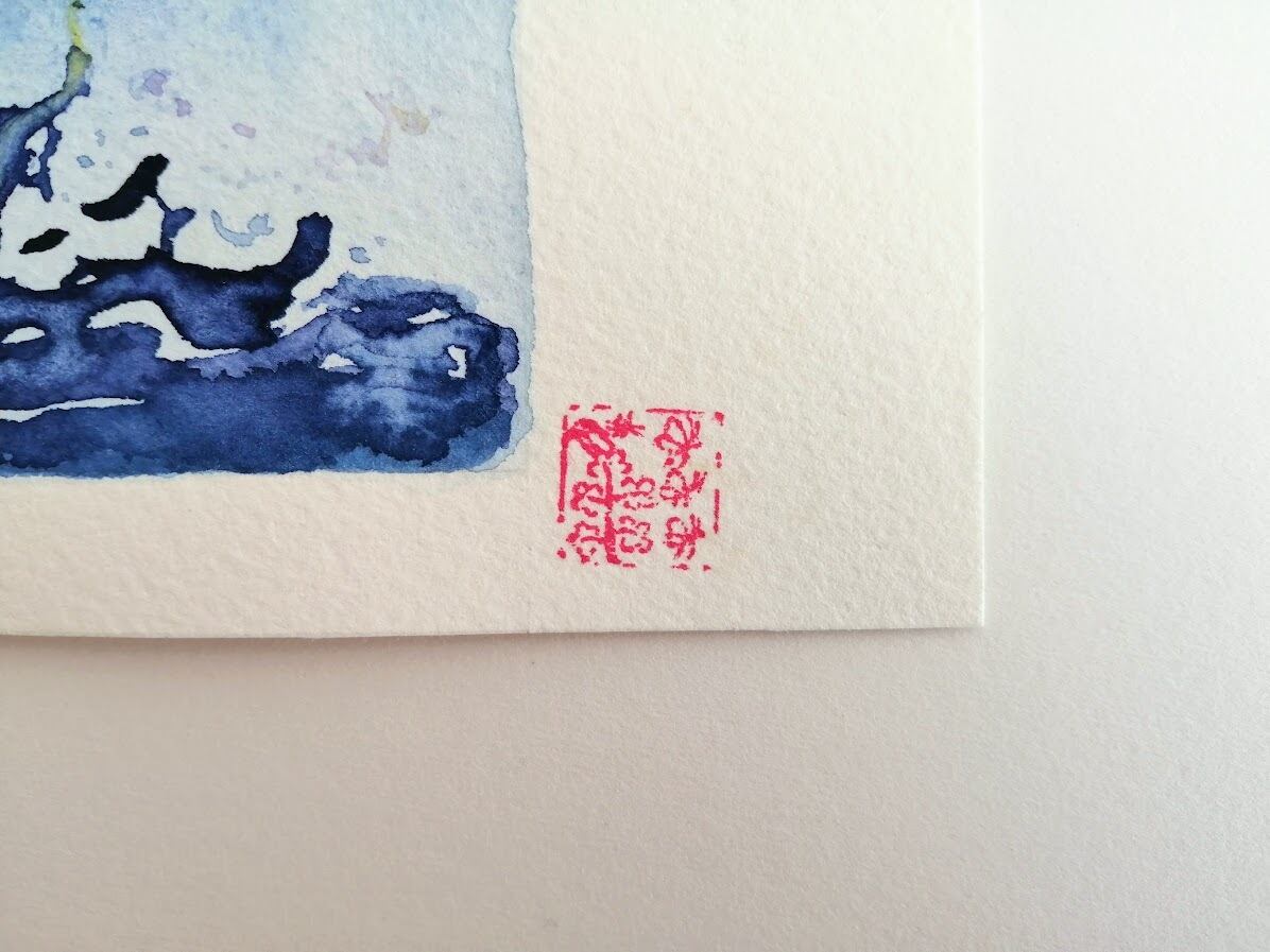 8㎝×8㎝の枠に透明水彩で